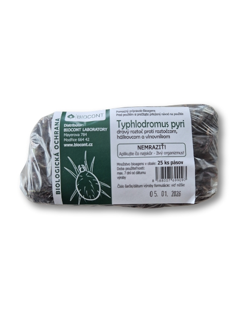 Typhlodromus pyri je biologický prípravok obsahujúci živé dravé roztoče, určený na ekologickú a dlhodobú ochranu viníc a ovocných sadov. Tento drobný, približne 0,6 mm dlhý rozotč mliečnobielej farby je vysoko účinný proti širokému spektru škodcov, najmä proti roztočcom (ovocný, chmeľový), vlnovníkom a hálkovcom.